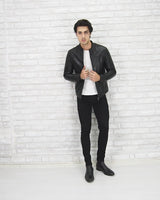 Happy Gentleman B101 - vīriešu melna īstas ādas baikeru jaka - pieguļoša piegriezuma